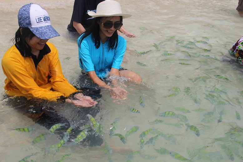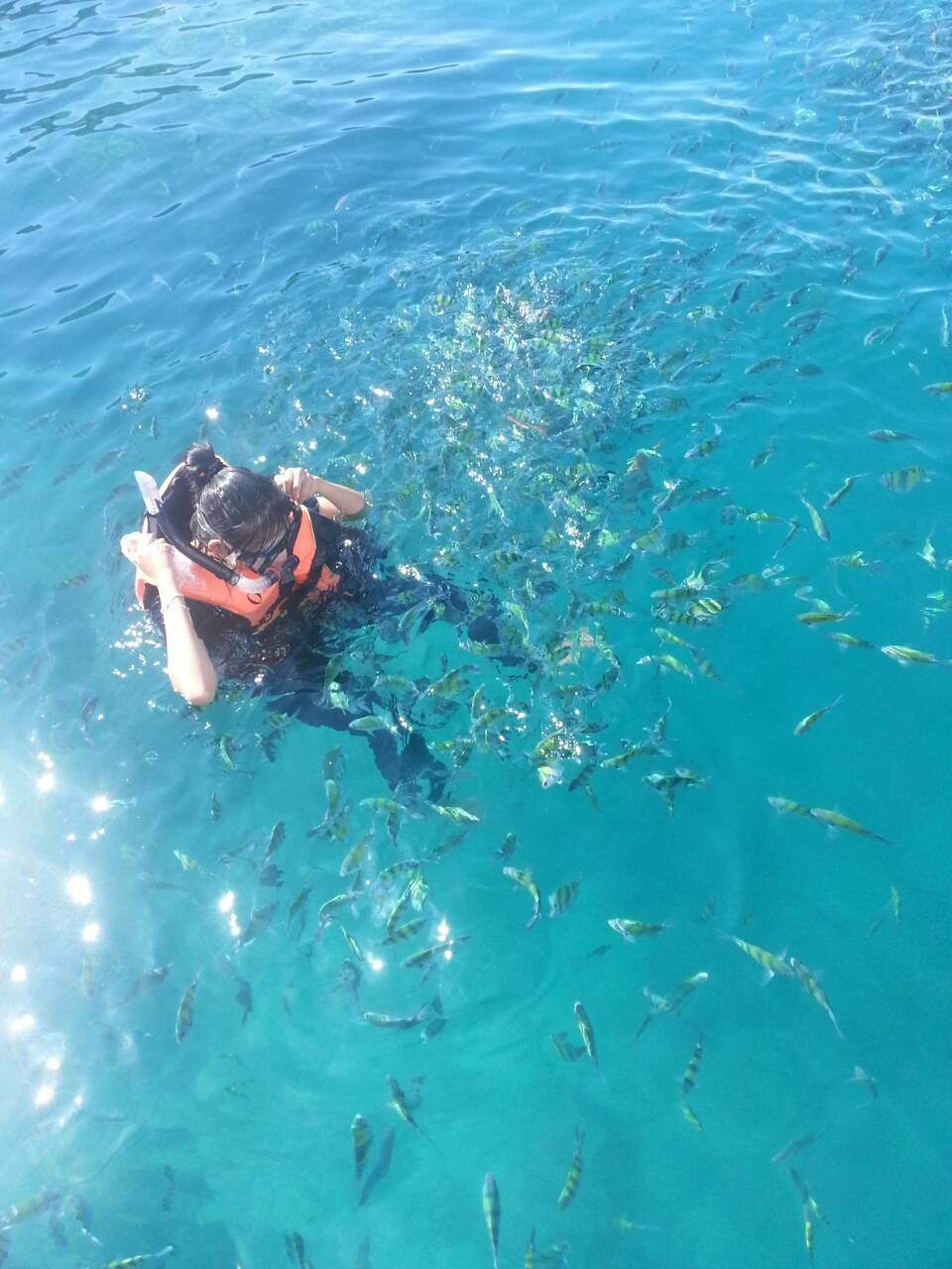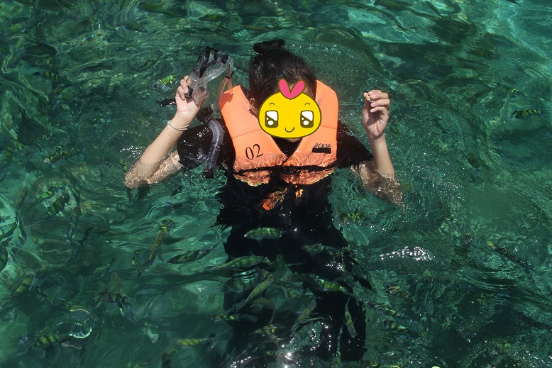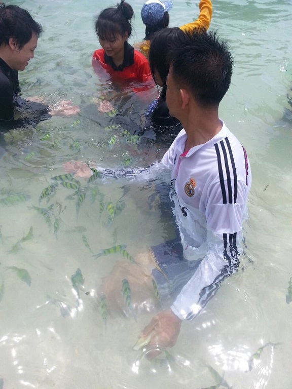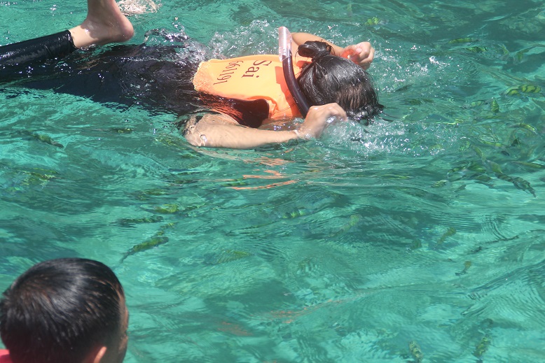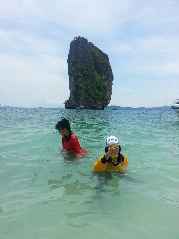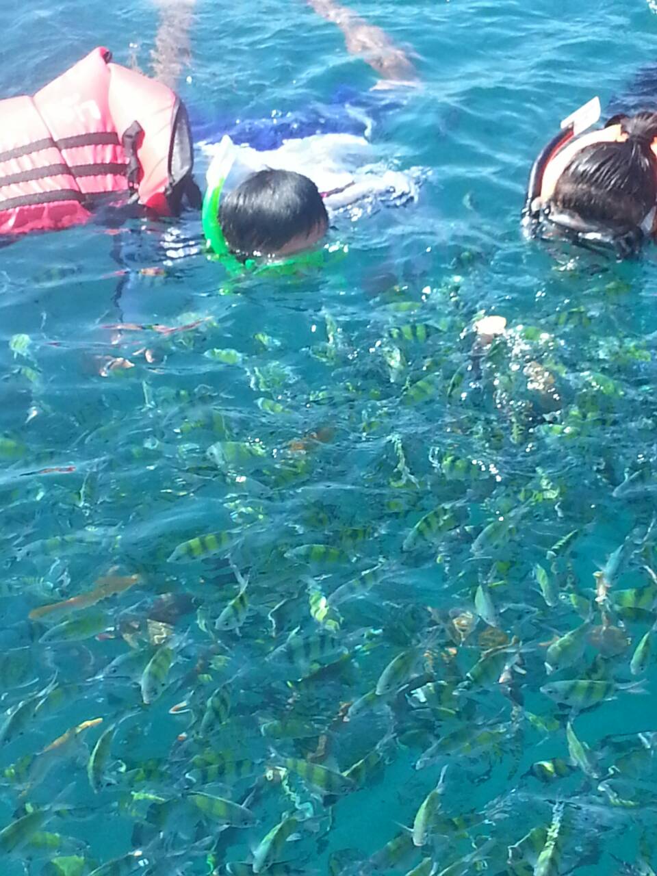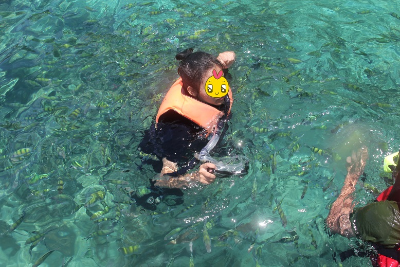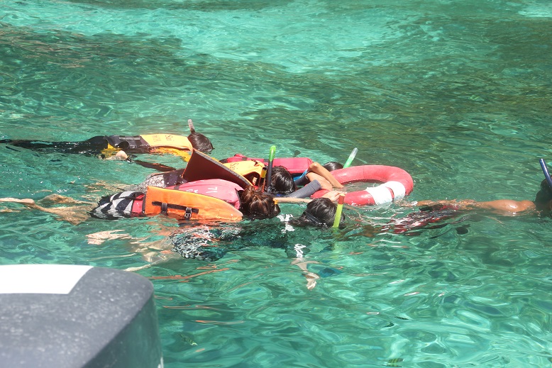 ใครว่ายน้ำไม่เป็นพี่คนขับเรือจะให้เกาะห่วงยางแล้วก็จะพาไปชมรอบๆ