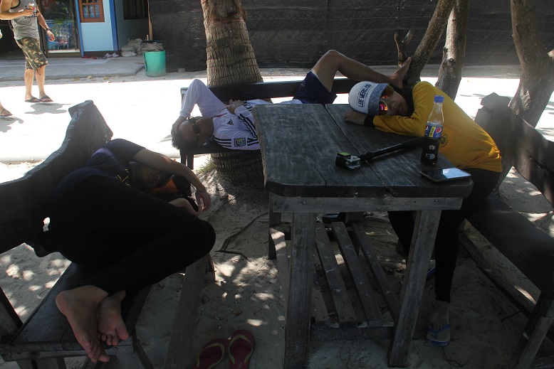 แต่ละคน หมดสภาพ 55 ไม่หรอก นอนเอาแรง เตรียมไปดำน้ำกันหลังจากแวะกินข้าวเที่ยงที่เกาะพีพี