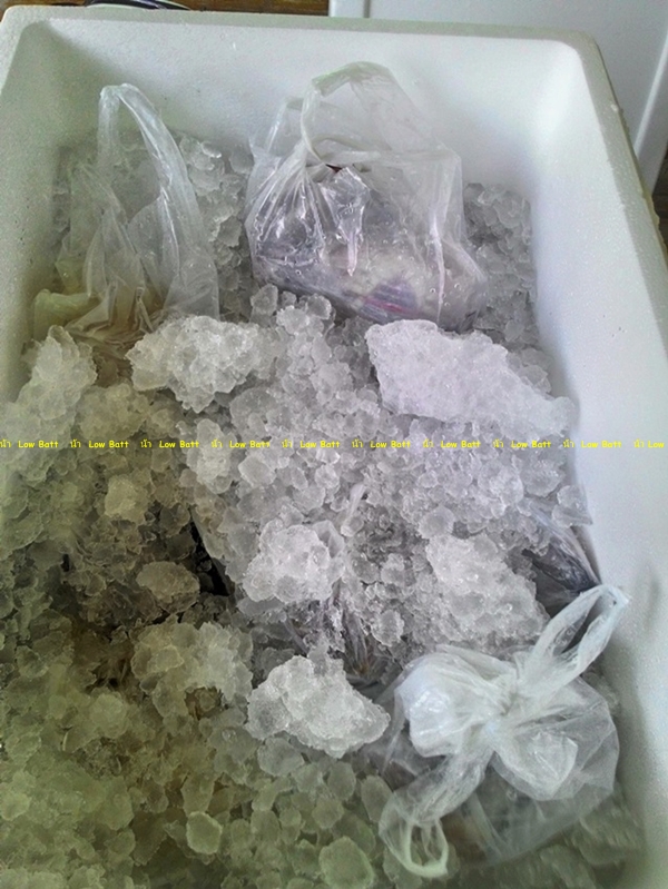 แล้วจัดการแพคใส่ลังโฟม โป๊ะน้ำแข็งเต็มที่เพื่อรักษาความสดให้ได้มากที่สุดก่อนจะนำไปปรุงเป็นอาหารมื้อเย็นที่โคราช