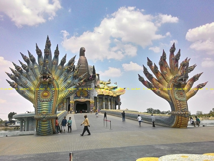 ลานด้านหน้าก่อนข้าม สะพานพญานาค เรียกว่า ลานอธิษฐาน ด้านหน้าก็จะเห็น พญานาค 19 เศียร 2 ตน